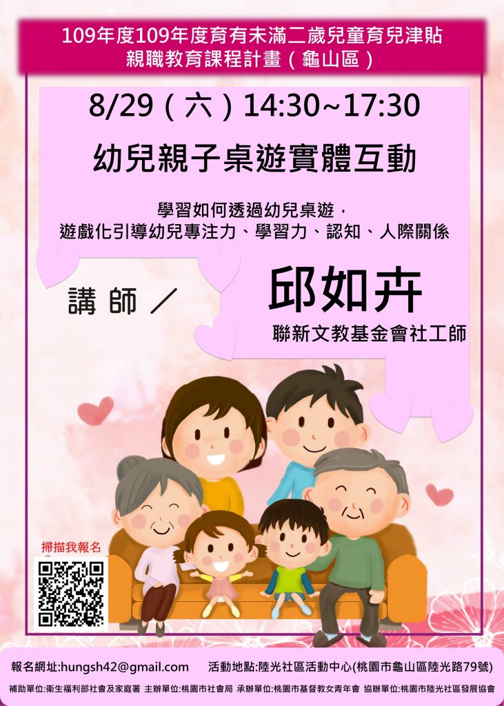 109年度育有未滿二歲兒童育兒津貼親職教育課程(龜山區)